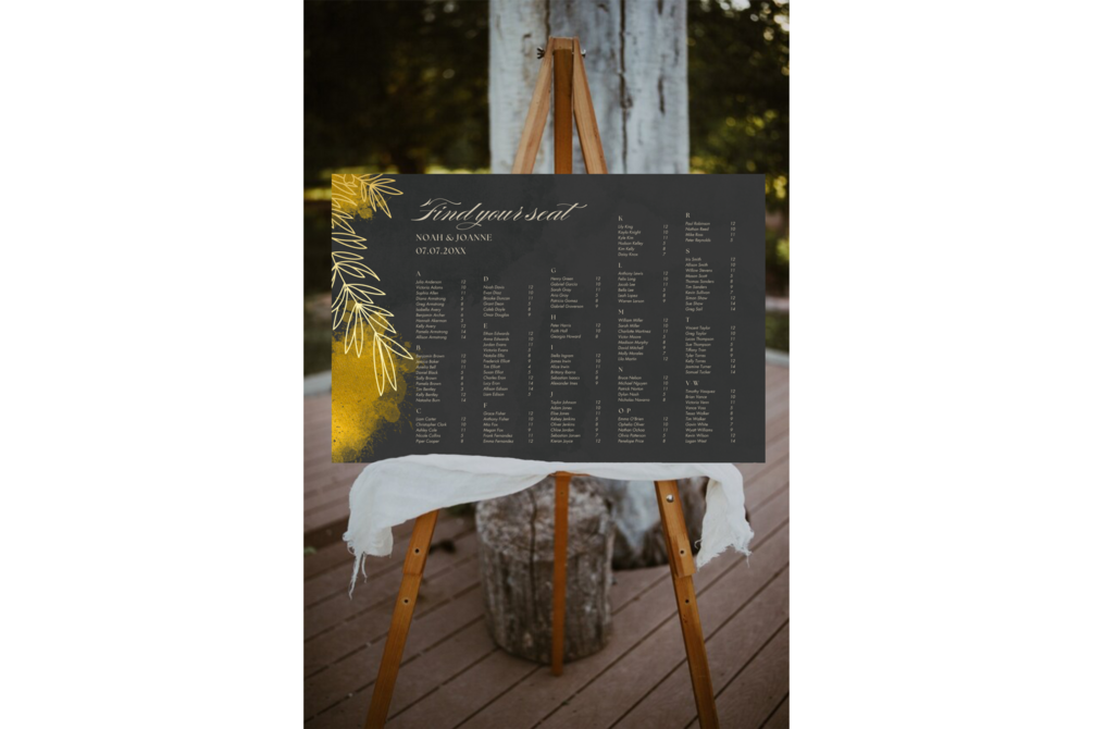 Elegant Black and Gold Wedding Seating Chart Template